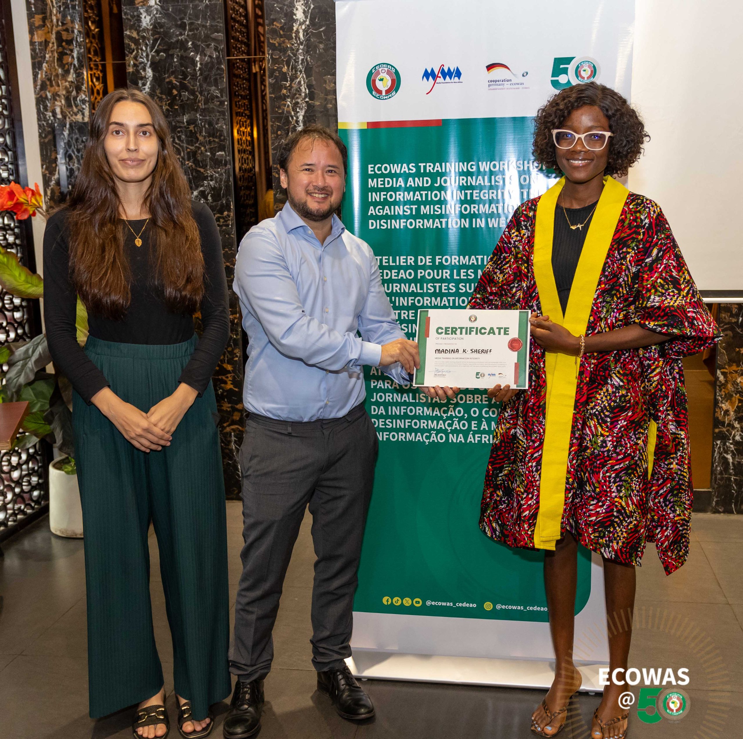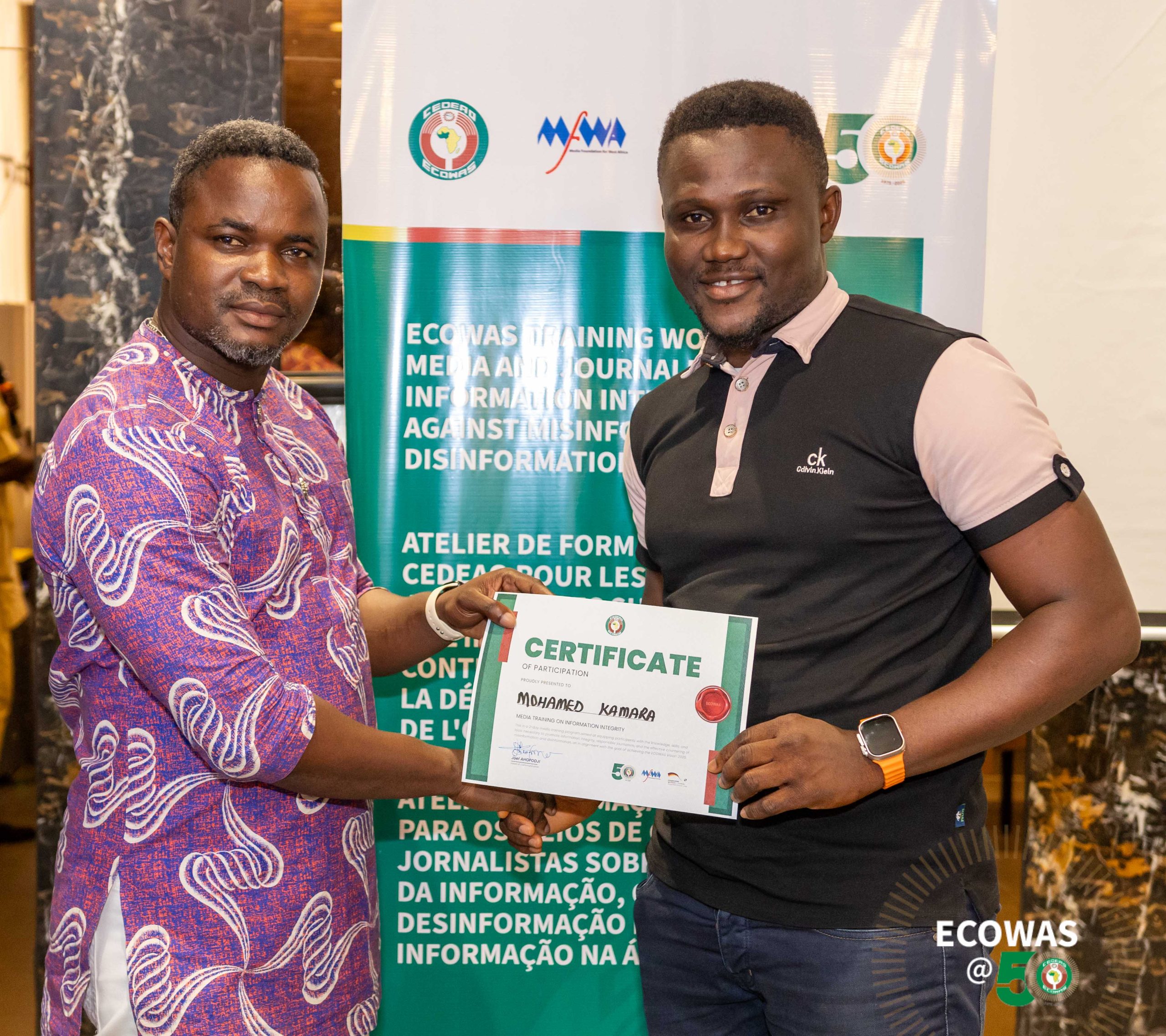 Dans son discours de clôture à l’issue de l’atelier de formation de deux jours, l’ambassadeur AZUMAH a souligné que cette formation témoigne de l’engagement indéfectible de la CEDEAO à soutenir les États membres et les professionnels des médias dans la promotion de l’intégrité de l’information et la lutte contre le fléau des discours faux et nuisibles dans toute la région.