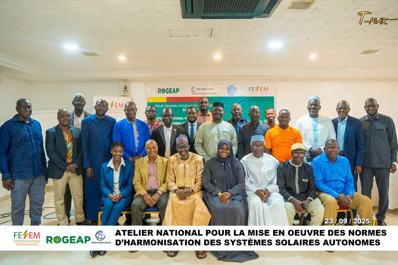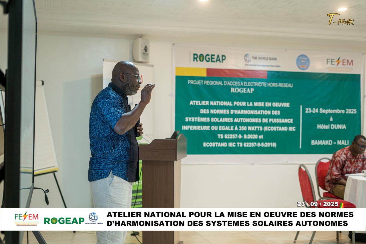 30 Sep, 2025Le Projet Régional d’Accès à l’Électricité hors Réseau (ROGEAP) a organisé deux ateliers nationaux de vulgarisation, de sensibilisation et de formation sur les normes régionales applicables aux systèmes solaires autonomes de puissance inférieure ou égale à 350 Wc (ECOSTAND IEC TS 62257-9-8 :2020 et ECOSTAND IEC TS 62257-9-5 :2018). Ces rencontres se sont tenues à Banjul, en Gambie, les 16 et 17 septembre 2025, puis à Bamako, au Mali, les 23 et 24 septembre 2025.
