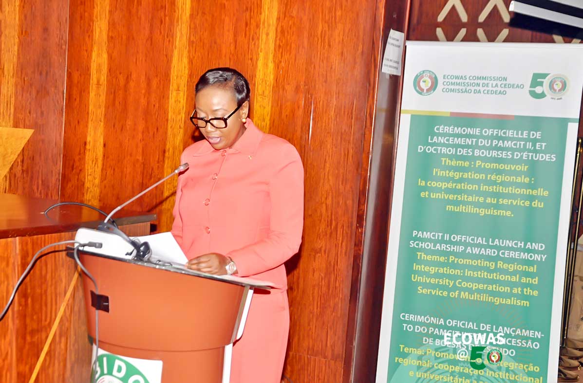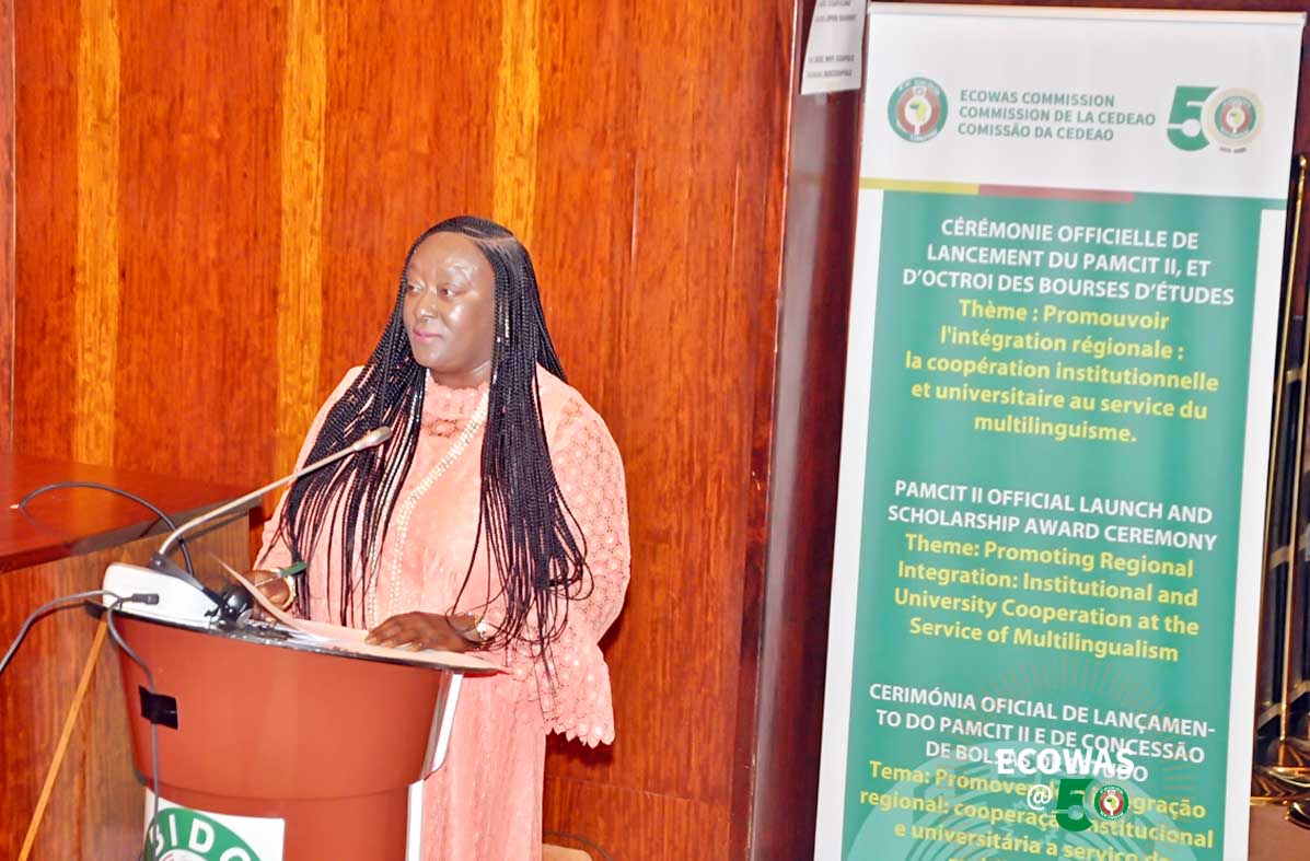 La Directrice des Conférences et du Protocole à la Commission de la CEDEAO et présidente institutionnelle du PAMCIT II, Madame Olukemi Robinson-Atabuh, a salué l’engagement des hauts responsables de la CEDEAO, dont celui du Président de la Commission de la CEDEAO, S.E. Dr Omar Alieu Touray, à soutenir le Programme PAMCIT II et à financer de plus en plusles programmes qui ciblent les jeunes de la région. Elle a mis en exergue la pertinence de PAMCIT en relavant que « Pendant des décennies, notre continent a dépendu fortement d’institutions externes pour la formation professionnelle des interprètes et des traducteurs. Pendant des décennies, notre continent a dépendu fortement d’institutions externes pour la formation professionnelle des interprètes et des traducteurs ». Elle a aussi magnifié le rôle joué par la BIDC dans le PAMCIT.