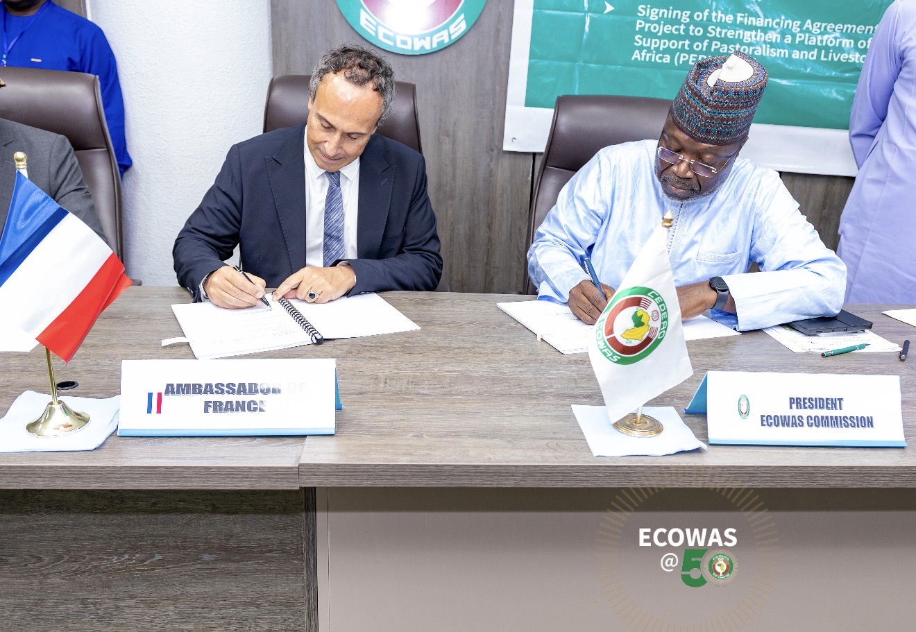 05 Dec, 2025Au cours d’une cérémonie historique qui s’est tenue ce 4 décembre 2025 au siège de la Commission de la CEDEAO, la principale organisation régionale d’Afrique de l’Ouest a réaffirmé son engagement pour la sécurité alimentaire et nutritionnelle, le développement rural et la cohésion sociale à travers le lancement du Projet d’Appui à l’Offensive Lait en Afrique de l’Ouest (PAOLAO) et la signature de l’accord de financement Projet régional de confortation d’une plateforme de solutions en appui au pastoralisme et à l’élevage en Afrique de l’Ouest (PEPISAO II). En présence de diplomates français, de responsables régionaux, de directeurs de la CEDEAO et d’acteurs du secteur agricole, cet événement a mis en évidence le rôle essentiel des partenariats dans la résolution des défis liés au développement régional.