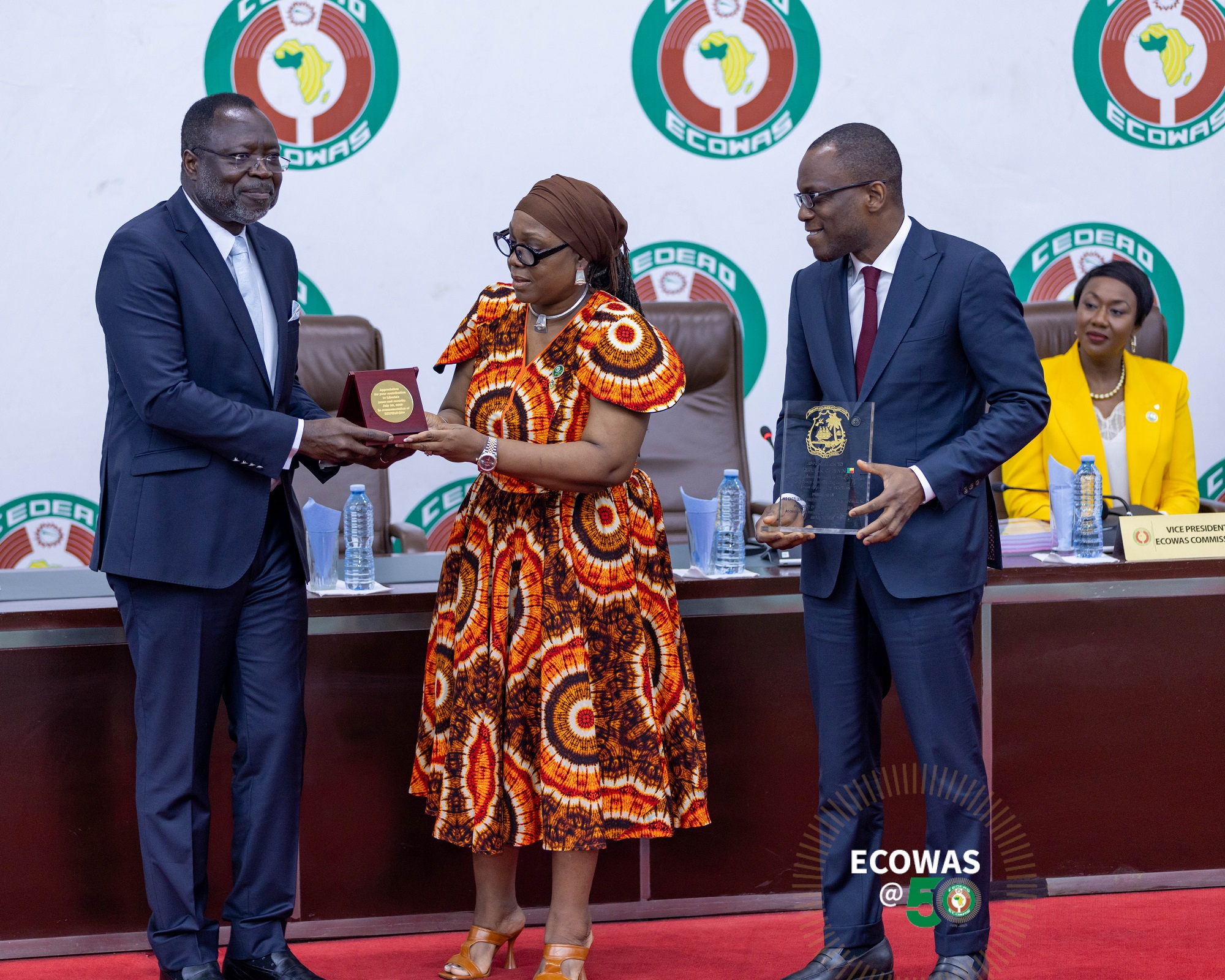 À l’issue de cette cérémonie solennelle de signature de l’accord de siège, S.E. Olushegun (Shegun) ADJADI BAKARI, ministre des Affaires étrangères du Bénin et le Dr Omar Alieu Touray, Président de la Commission de la CEDEAO, ont reçu de S.E. Mme Sara Beysolow Nyanti, ministre des Affaires étrangères du Liberia, un témoignage de reconnaissance, respectivement au nom des États membres et de la CEDEAO, pour leur immense contribution à la restauration de la paix, de la démocratie et de la stabilité au Liberia.