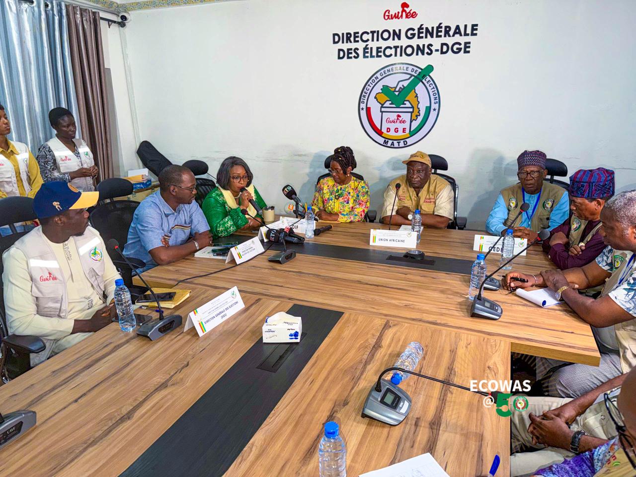 Le chef de la MOE accompagné de sa délégation s’est rendu un peu plus tard dans la journée pour une visite de courtoisie à la Direction Générale des Élections (DGE) pour s’enquérir du bon préparatif du processus électoral. Il a reçu l’assurance de la part de Madame Djenabou Touré Camara, Directrice générale des élections, que tout sera fin prêt d’ici le 28 décembre, jour du scrutin : le matériel est en cours d’acheminement, le personnel des bureaux de vote en cours de formation, et les recommandations de la CEDEAO faites après le référendum constitutionnel du 21 septembre 2025 prises en compte et déjà mises en œuvre.