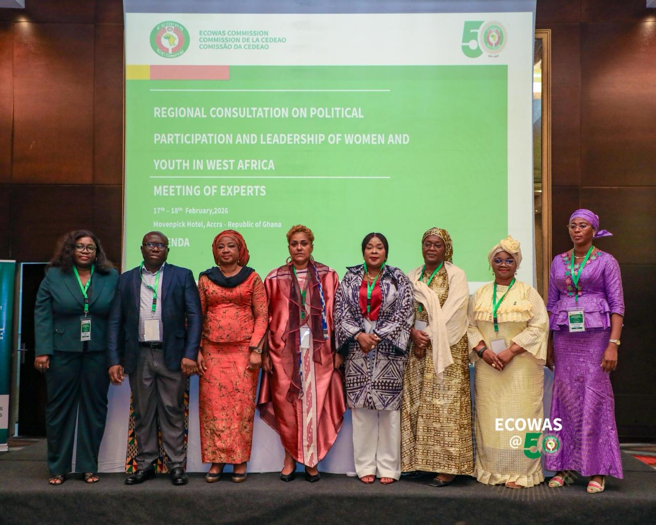 18 Feb, 2026Les Experts genres et points focaux du programme Human Capital Développement (HCD) des Etats membres de la CEDEAO se rencontrent du 17 au 18 février 2026 à Accra au Ghana dans le cadre de la Consultation Régionale sur la participation politique et le leadership des femmes et des jeunes en Afrique de l’Ouest. L’objectif de cette réunion technique est d’encourager les Etats membres à adopter les réformes législatives nécessaires en vue de la participation politique effective et le leadership des femmes et des jeunes dans la région Afrique de l’Ouest à l’horizon 2035. Cette réunion des Experts précède la Réunion ministérielle et le Plaidoyer de Haut Niveau qui auront respectivement lieu les 19 et 20 février 2026 sur la même thématique.