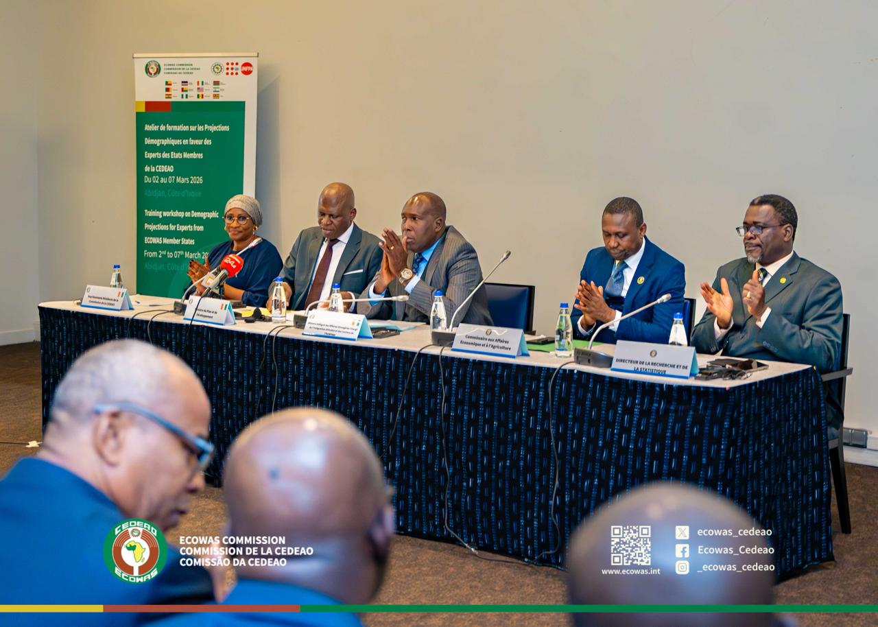 La cérémonie de lancement de ces ateliers techniques, qui a eu lieu ce lundi 2 mars 2026 et qui a donné le ton de ces travaux placés sous le signe de l’innovation, de la collaboration régionale et de l’excellence statistique, a été présidée par S.E. Adama Dosso, Ministre Délégué auprès du Ministre d’Etat, ministre des Affaires Etrangères et de la Coopération Internationale chargé de l’Intégration Africaine et des Ivoiriens de l’Extérieur. Etaient présent à ses côtés, Dr. Kalilou Sylla, Commissaire aux Affaires économiques et à l’Agriculture de la Commission de la CEDEAO, le Prof. KOUAKOU Kouadio Clément, Directeur de Cabinet adjoint, représentant S.E. Souleymane Diarrassouba, ministre du Plan et du Développement de la Côte d’Ivoire, S.E. Fathmah DIARRE-DIOP, Représentante résidente de la CEDEAO en Côte d’Ivoire par intérim, le Prof. Félix N’Zué, Directeur de la Recherche et des Statistiques de la CEDEAO par intérim, des experts des pays membres et de la CEDEAO, et d’invités.