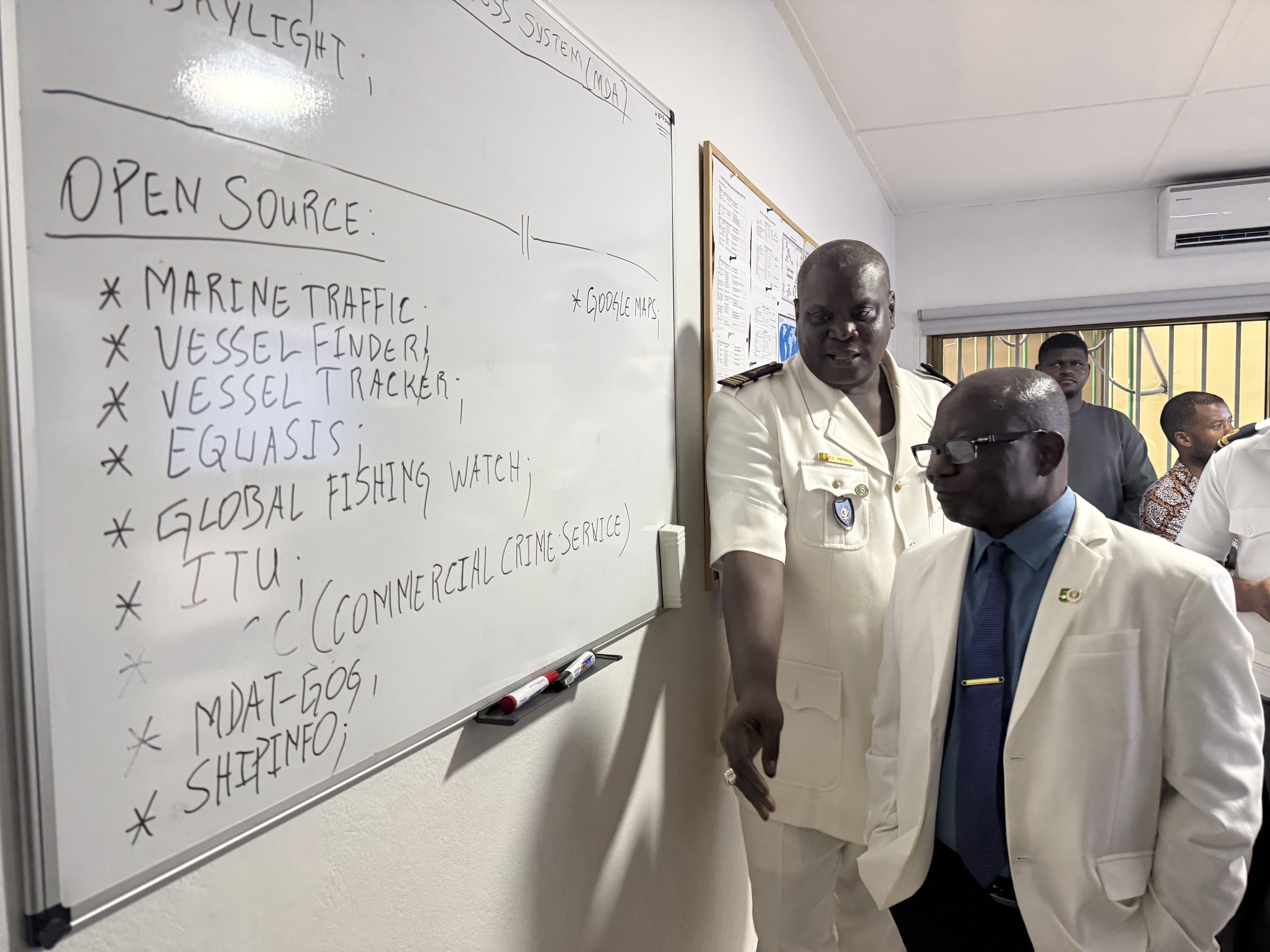 La délégation s’est également rendue au Centre multinational de coordination maritime – Zone G, où elle a été reçue par le Capitaine Abdoulaye Dieng, Coordonnateur du Centre, et son équipe. Les échanges ont mis en évidence l’importance de la coopération régionale en matière de sécurité et de la coordination maritime pour soutenir un environnement de gouvernance stable dans lequel les processus démocratiques peuvent se dérouler.