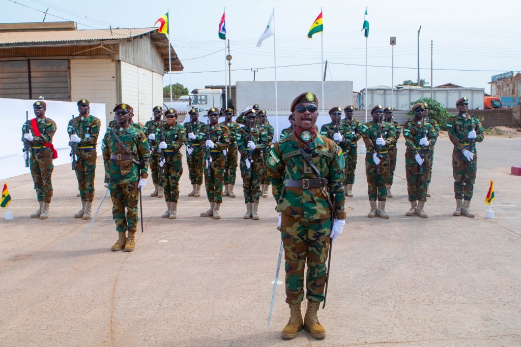 S’adressant à l’assemblée, le commandant de la force ECOMIG, le colonel Aliou Tine, a félicité les officiers et les soldats du GHANCOY 9 pour leur professionnalisme et leur dévouement à la mission. Il a souligné le rôle du contingent ghanéen dans le maintien de la sécurité dans sa zone de responsabilité grâce à des patrouilles coordonnées et à une coopération étroite avec les services de sécurité gambiens. Il a notamment mentionné le rôle du contingent au terminal ferry de Barra, une liaison de transport vitale reliant les rives nord et sud du pays.