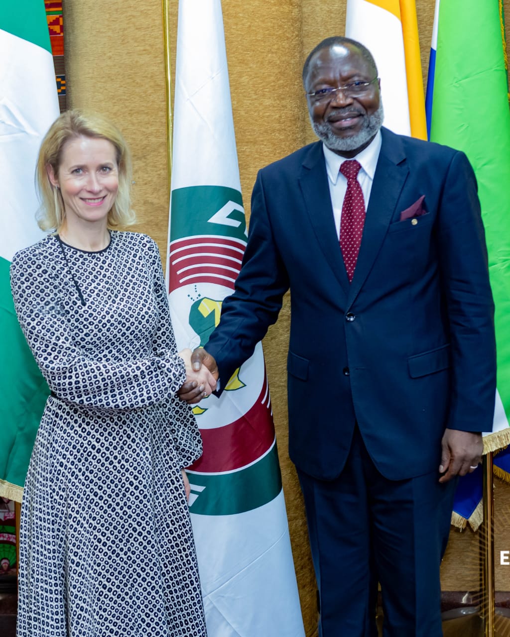 24 Mar, 2026Le Président de la Commission de la CEDEAO, S.E. Dr Omar Alieu Touray, a reçu la Haute Représentante de l’Union européenne pour les affaires étrangères et la politique de sécurité et Vice-Présidente de la Commission européenne, S.E. Mme Kaja Kallas, à Abuja le 23 mars 2026, dans le cadre d’une réunion stratégique de haut niveau visant à renforcer la coopération en matière de stabilité régionale, d’intégration et des implications des évolutions géopolitiques mondiales pour l’Afrique de l’Ouest, tout en faisant progresser des réponses coordonnées aux défis sécuritaires, économiques et institutionnels émergents dans la région.