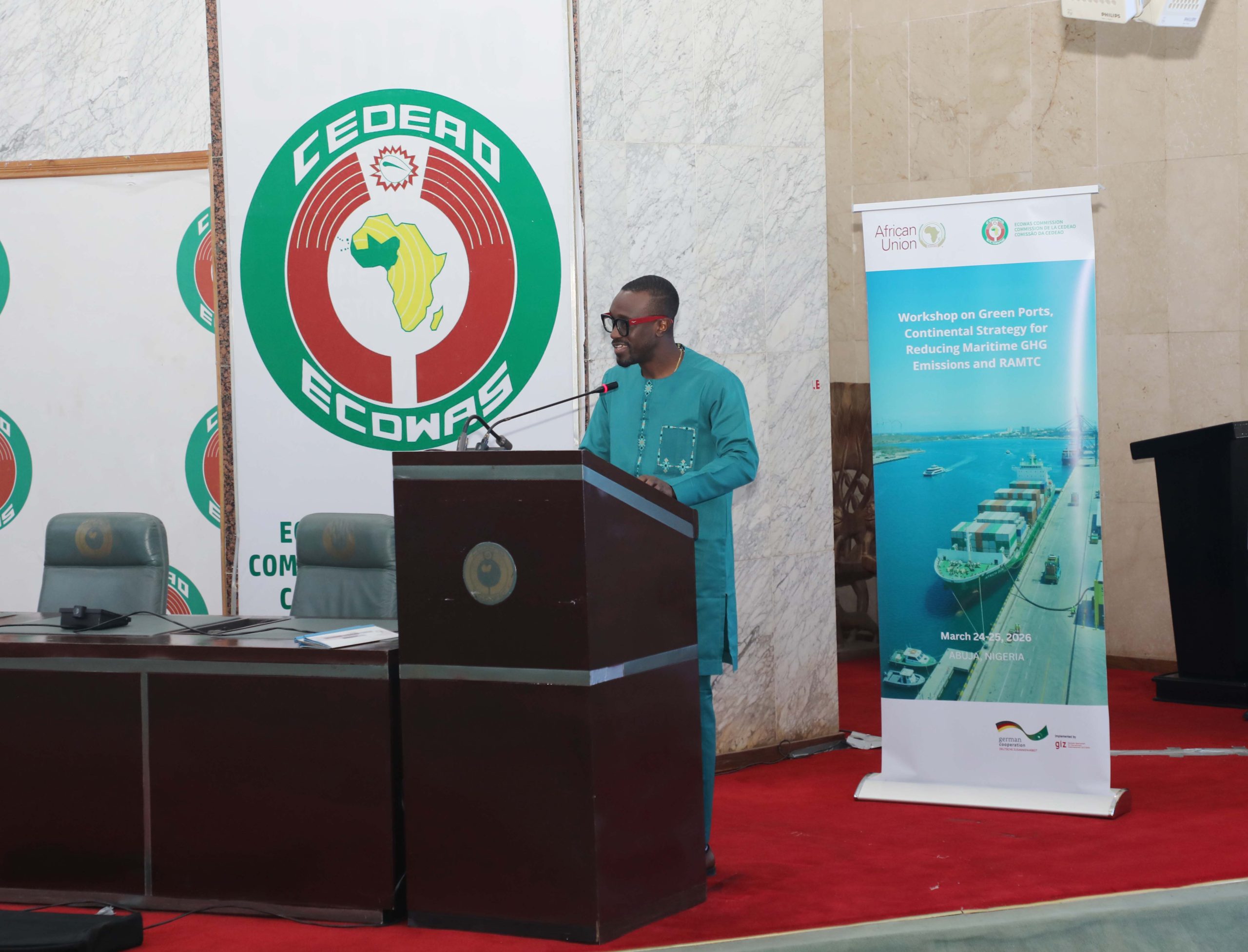 25 Mar, 2026Dans le cadre de la transition de l’Afrique vers des systèmes maritimes durables, la Communauté Économique des États de l’Afrique de l’Ouest (Commission de la CEDEAO), en étroite collaboration avec la Commission de l’Union Africaine (CUA), a organisé un atelier continental de validation de haut niveau sur les lignes directrices relatives aux ports verts, la réduction des émissions de gaz à effet de serre du transport maritime et la mise en œuvre de la Charte africaine révisée des transports maritimes, réunissant des acteurs continentaux de haut niveau, des institutions maritimes et des experts techniques au siège de la CEDEAO à Abuja (Nigéria), le 24 mars 2026, dans le cadre d’un engagement stratégique de deux jours visant à harmoniser la position de l’Afrique et à accélérer les voies de mise en œuvre.