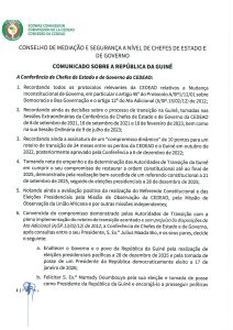 COMUNICADO DA CEDEAO SOBRE A REPÚBLICA DA GUINÉ