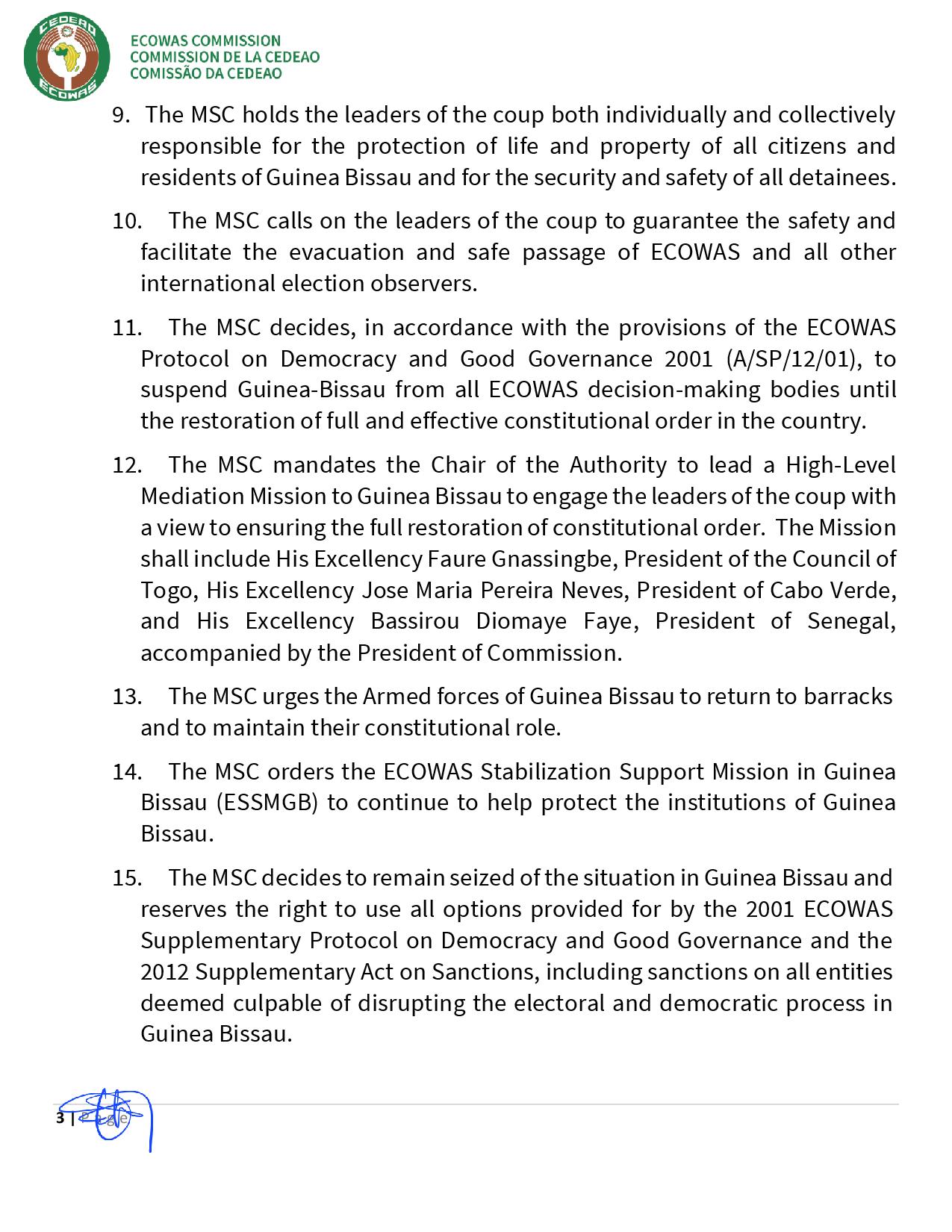 Final Communique of the Extraordinary Virtual Summit of the Ecowas Heads Of State and Government on the Situation IN Guinea-Bissau. Thursday, 27 November 2025.