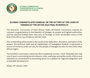 ECOWAS CONGRATULATES SENEGAL ON THE VICTORY OF THE LIONS OF TERANGA AT THE AFCON FINAL IN MOROCCO